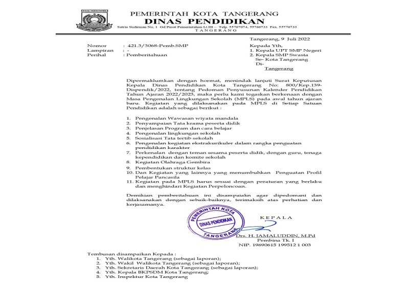 Pelaksanaan Kegiatan MPLSTujuan dari diadakan kegiatan MPLS adalah untuk membatu peserta didik dalam beradaptasi dengan kondisi lingkungan sekolah yang baru. Pengenalan itu mencakup aspek keamanan, kondisi lingkungan, sarana prasarana bel ...